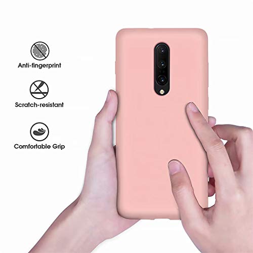 FHXD Compatibile con Custodia Oneplus 8 Pro Morbido TPU Silicone Liquido Case Cover+1*Proteggi Schermo Anti-Scratch Anti-Shock Antiscivolo Telefono Caso-Rosa