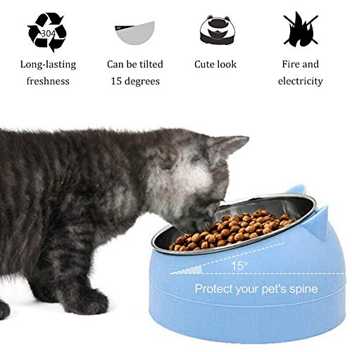 FHYT Ciotola per Gatti, Ciotola per Gatti, Ciotola per Animali Domestici Inclinata, per Animali Rimovibile per Gatti e Cani di Piccola Taglia (Azzurro, 200ML