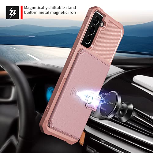 FHZXHY Galaxy S22 Plus Custodia a portafoglio porta carte Slot con funzione di supporto magnetico per auto Cover per Samsung Galaxy s22+Plus 5g 6,6 pollici 2022-Rosa