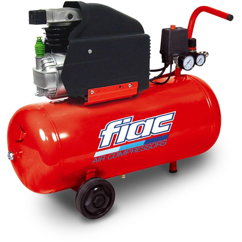 Compressore elettrico carrellato FIAC COSMOS 255 con serbatoio da 50 litri Fiac COSMOS � un compressore di tipo coassiale ovvero con gruppo pompante direttamente montato sull'albero del motore elettrico in modo da evitare qualsiasi sistema aggiuntivo di trasmissione e la conseguente perdita di potenza. Ideale per un uso hobbistico intensivo e per professionisti che vogliono un compressore con una buona potenza e facile da spostare. Gruppo pompante in fusione di alluminio e cilindro in ghisa con lubrificazione a sbattimento, motore 2 HP, serbatoio da 50 litri. CARATTERISTICHE: - serbatoio lt: 50 - aspirazione lt/min: 170 - pressione max: 8 bar - potenza motore: HP 2 - giri/min: 2850 - rumerosit�: 80 Db - dimensioni: L770 X P430 X H660 mm - peso: 32 kg