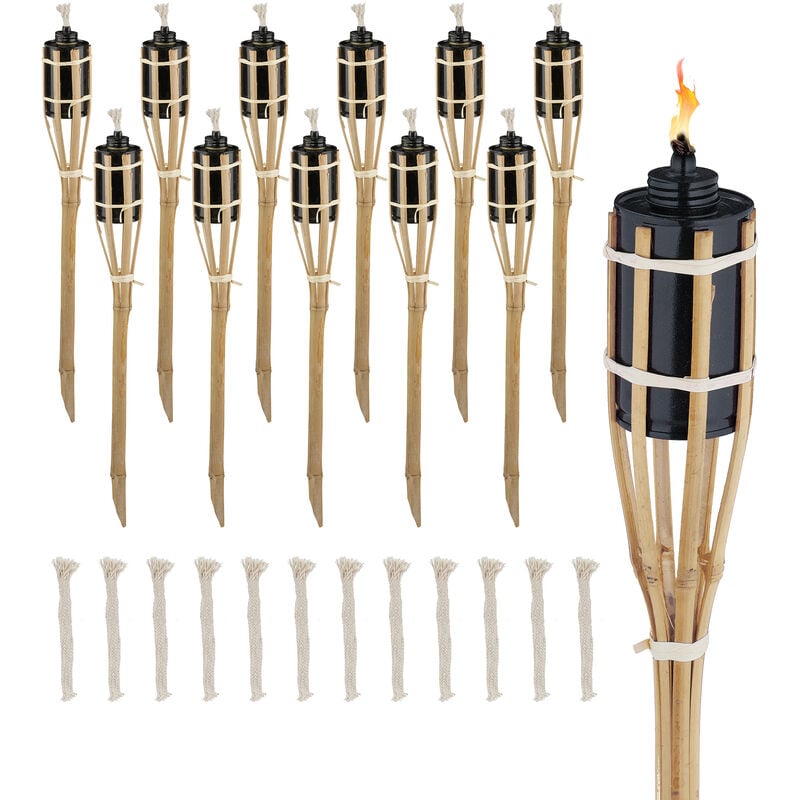 Crea nel tuo giardino un'illuminazione suggestiva con questo set da 12 fiaccole ad olio. Posiziona le fiaccole in giardino o nel vialetto come illuminazione per il sentiero o decorazione, così da poter festeggiare il compleanno, matrimonio o organizzare una grigliata durante le serate estive. Le fiamme tremolanti creeranno un'atmosfera suggestiva e rilassante per il tuo evento. Le torce a olio possono essere piantate facilmente nel terreno. Una volta posizionate, ti basterà riempire il contenitore per il combustibile e accendere lo stoppino. Set da 12 fiaccole solari da giardino in dettaglio - Dimensioni totali H x D: 50 x 6 cm ca. - Volume contenitore per l'olio: 250 ml ca. - Durata dello stoppino: 4-6 h ca. - Peso di ogni fiaccola: 90 g ca. - Materiale: bambù, ferro - Colore: color legno naturale, nero Lanterne a olio decorative - Elegante illuminazione per il giardino - Per illuminare il vialetto del giardino oppure come decorazione per le feste ecc. - Contenitore in metallo per