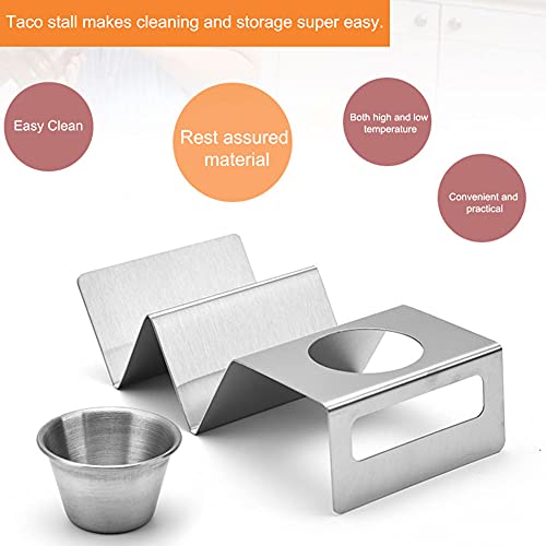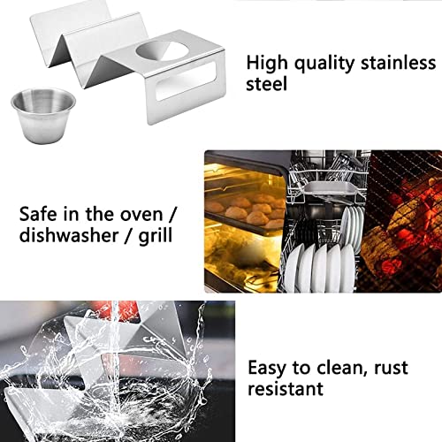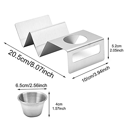 Fiacvrs Vassoio per Tacos - Supporto per piatti da portata Taco con tazza per salsa + manico, in acciaio inox, per servire da Tavolo tortilla/burrito/hot dog per Ristorante, per Casa,Picnic(20x10x5cm)