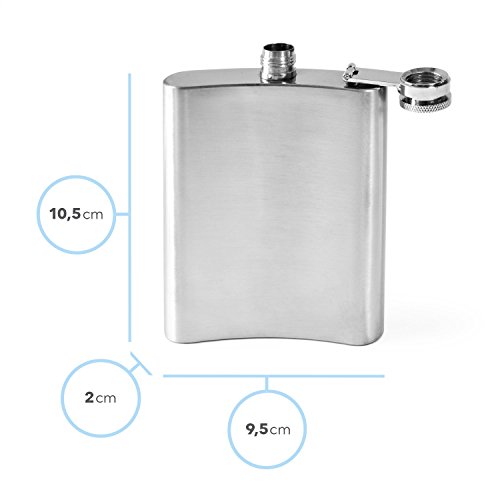 Fiaschetta per fianchi in acciaio inox con tappo a vite e imbuto | bottiglia tascabile da 220 ml