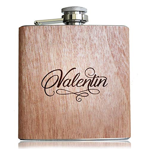 Dimensioni: circa 100 g. 180 ml (circa 10 x 9,5 cm). Materiale: legno e acciaio inossidabile. | Elegante bottiglia di alcol con il proprio nome/nome a scelta.