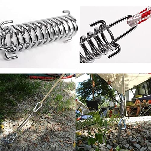 【Accessori da campeggio】 : La molla di tensione è adatta per l'uso in spiaggia e con vento forte. Quando arriva un forte vento, il gancio a molla può smorzare il vento e impedire che il vento danneggi la tenda.