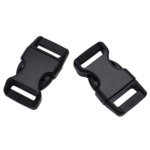 Fibbie in plastica, 15 mm, rilascio laterale curvo, per bracciali Paracord, colore nero, Nero, Confezione da 100 pz