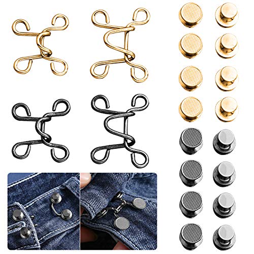 4 set di fibbie in vita regolabili senza chiodi, estensore per jeans estensibile con fibbia in vita regolabile SourceTon, bottone regolabile per pantaloni (2 taglie, oro e nero)
