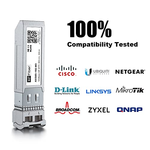 ✅Compatibile con l'ampio spettro: Per Cisco SFP-10G-SR, Meraki MA-SFP-10GB-SR, Ubiquiti UniFi UF-MM-10G, Mikrotik, Netgear, D-Link e altre apparecchiature aperte con porta SFP+ 10G.