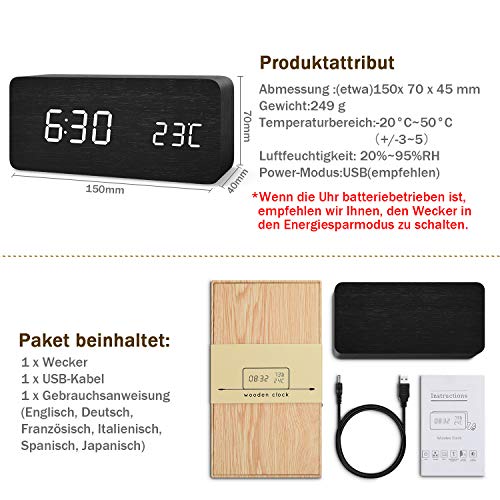 FIBISONIC 782072 Sveglia Digitale con Orologio LED, Nero/Bianco