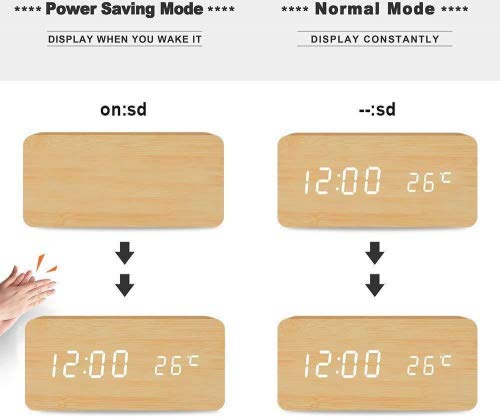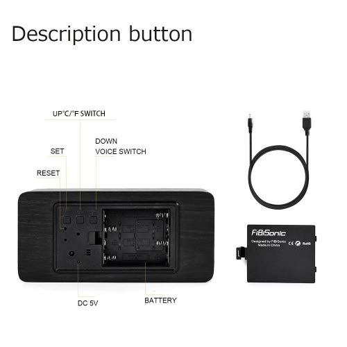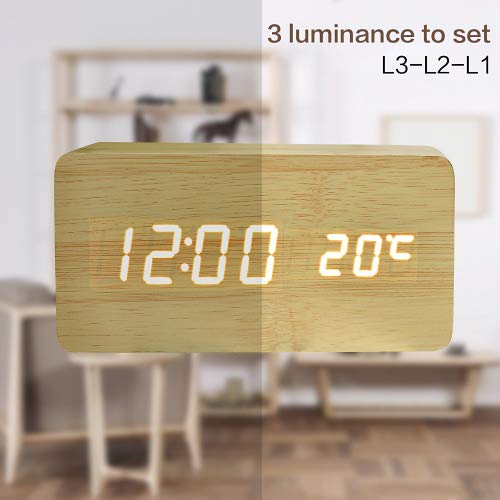 FIBISONIC Sveglia Digitale LED Orologio da Comodino Sveglia da Tavolo con Ore Data Temperatura(bambù-Bianco)