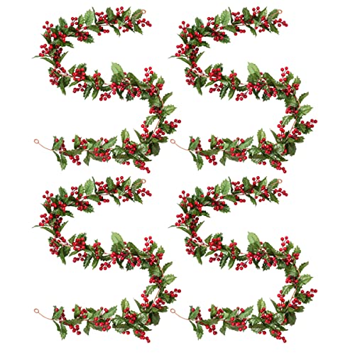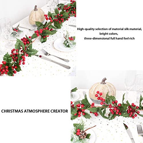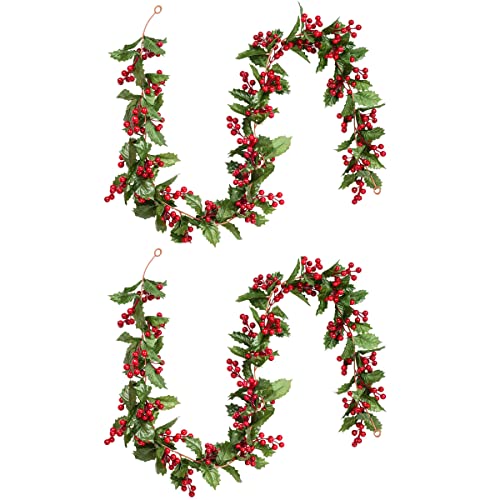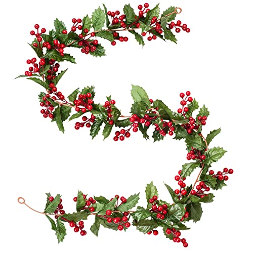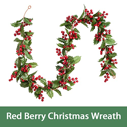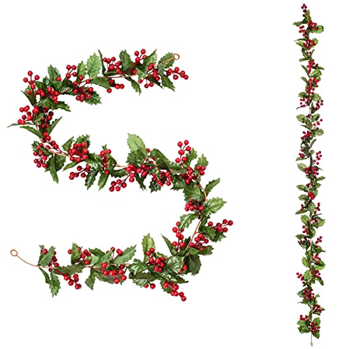 FIBOUND 170cm Bacca Natale Ghirlanda,Rosso Bacca e Abete Natalizia Agrifoglio Ghirlanda Bacca di Natale Ghirlanda per Interni Camino Natale Capodanno Decorazione(5.57 FT)