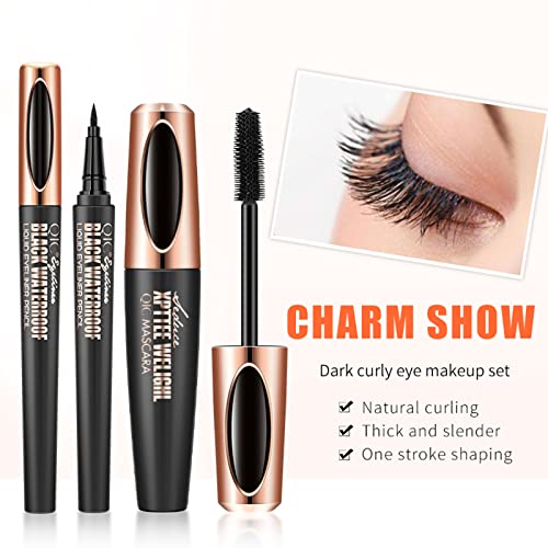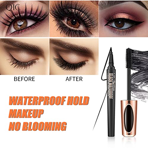 4D fibra di seta mascara per ciglia con eyeliner liquido, cosmetici neri impermeabili + Eyeliner Waterproof eyeliner penna Professionale eyeliner liquido (nero)