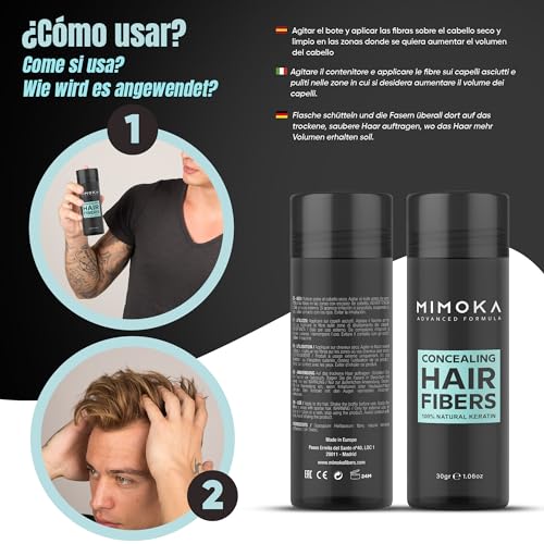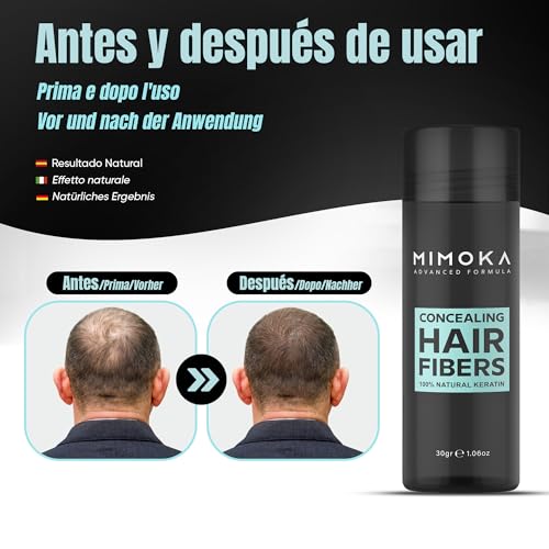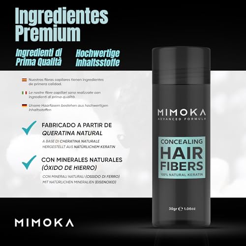 FIBRE PER CAPELLI MIMOKA - Nasconde Istantaneamente la Calvizie - Microfibre Impercettibili 100% naturali - Per Capelli e Barba - Polvere per Capelli Uomo e Donna - Castano Scuro - 30 gr.