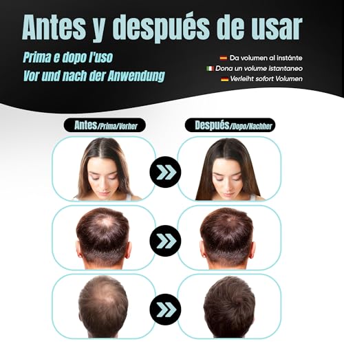 FIBRE PER CAPELLI NATURALI: le polveri per capelli per uomo e per donna nascondono la calvizie nelle zone prive di capelli e danno volume grazie alla fibra di cheratina 100% naturale (per capelli e barba). Ideale per l'uso quotidiano da parte di uomini e donne.