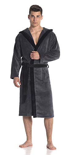 Di Ficchiano - Accappatoio da uomo “Monza” con cappuccio, in microfibra, colori e taglie a scelta da XXS a 5XL, conforme allo standard Öko-Tex 100 Grigio/Nero XXL