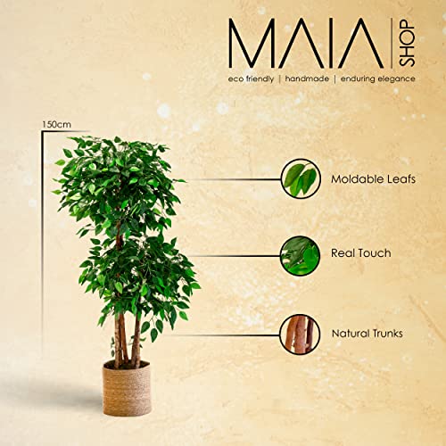 Ficus artificiale da 2 e 3 calici con Tronchi naturali, realizzati con i migliori materiali, ideale per decorare la casa, la lanta, l'albero artificiale (150 cm, 2 calici)