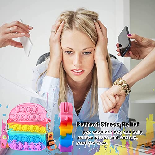 【Pop it Game Rainbow Stress Relief Anti-Anxiety Fidget Toy】: premendo le bolle, questa borsa pop può alleviare efficacemente ansia e stress, concentrazione e vigilanza. Può essere utilizzata come borsa o come giocattolo antistress. La borsa a tracolla autismo aiuta a ripristinare l'umore.