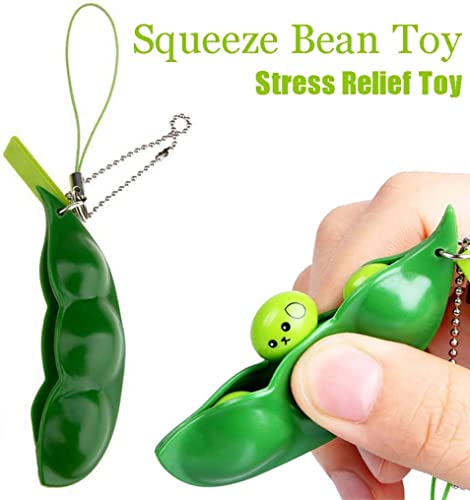 Fidget Toys, Squeeze Edamame Squishy, giocattolo con ciondolo a forma di soia per ridurre l'ansia e lo stress, squeeze-a-bean, portachiavi antistress, giocattolo per piselli (1 pz)