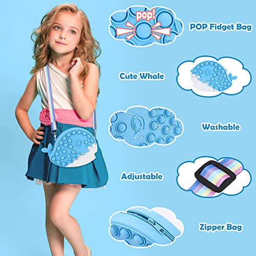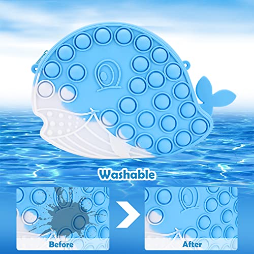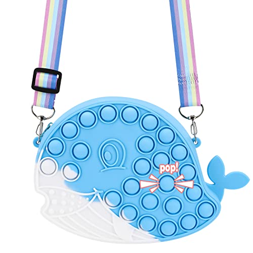Pop It Fidget Toy Bag, Upkey Pop It Mini Balene Carine Borsa Popit, Pop It Fidget Toy Handbags con Tracolla Regolabile, Bolla di spinta in silicone antistress Little Blue Whales per tenere caramelle