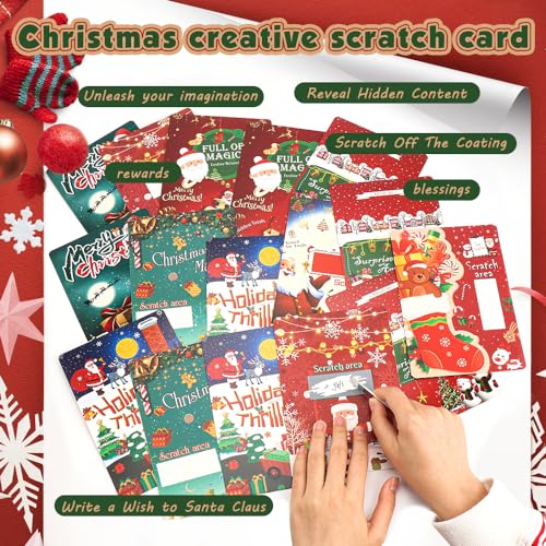 【RICCO DI SORPRESE】 Queste carte possono essere trasformate in biglietti di auguri di Natale, nascondendo benedizioni o messaggi personalizzati sulle carte per i destinatari da scoprire quando grattano. Queste carte possono anche essere usate come biglietti per esprimere i desideri a Babbo Natale, permettendo a bambini e adulti di esprimere i loro desideri in questa stagione speciale.