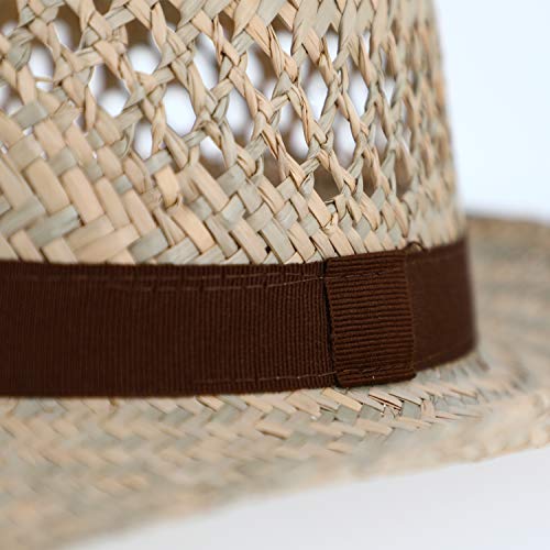 Fiebig Fedora Cappello di Paglia con Nastro Marrone | Cappello da Sole per Uomo e Donna | Cappello Bogart Made in Italy | Cappello Estivo a Tesa Larga in Colore Naturale (61-XL)
