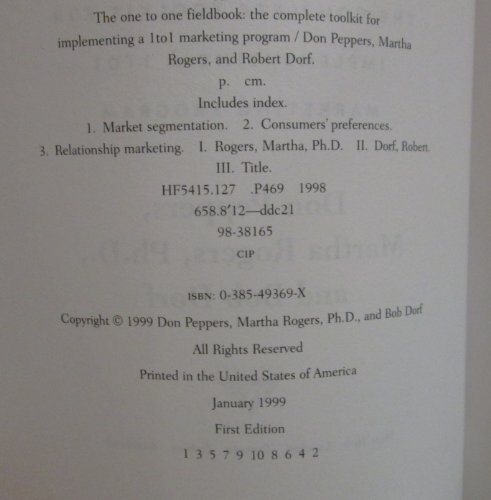 The One to One Fieldbook: The Complete Toolkit for Implementing a 1To1 Marketing Program