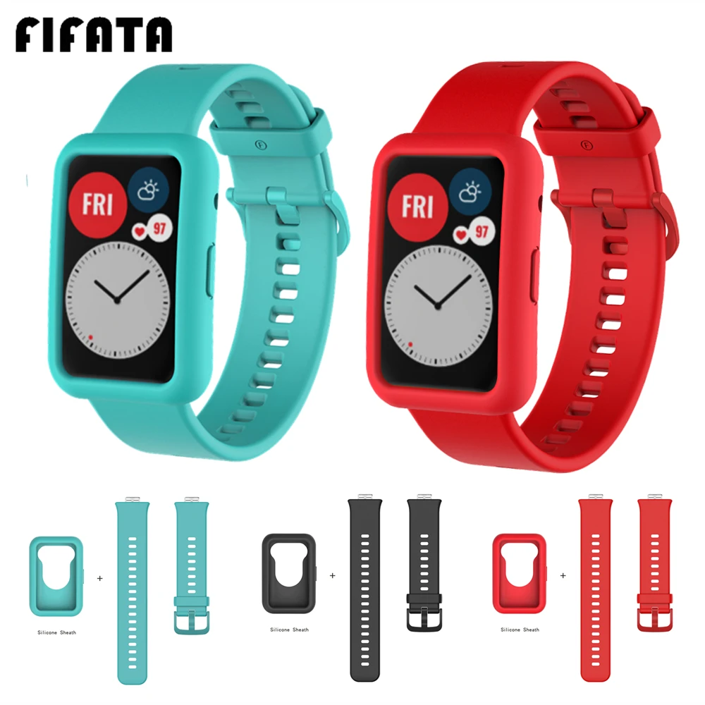 FIFATA Soft Silicone Strap + Protective Cover For Huawei Watch Fit Bracelet Protector Case Shell+Sport Watch Band For Huawei Fit