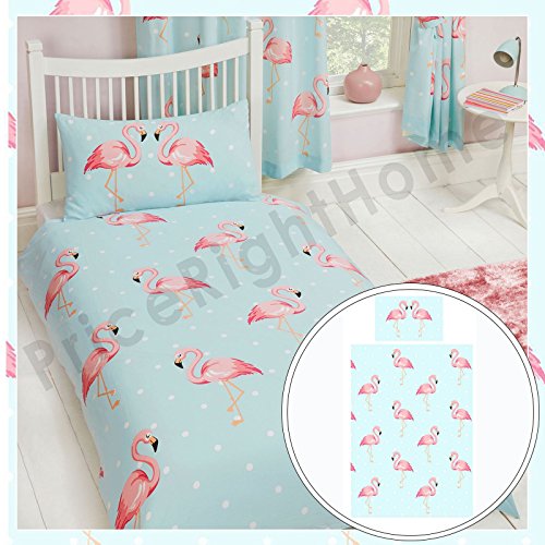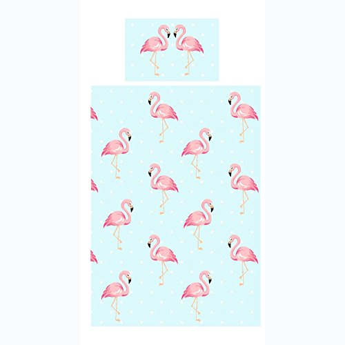 Fifi Flamingo - Copripiumino singolo e federa per cuscino, in poliestere e cotone, per lettino dei bambini