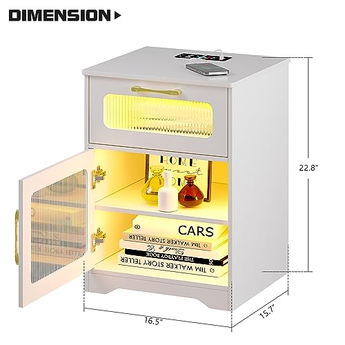 Figbird Comodino con luce RGB a 20 colori, con stazione di ricarica wireless, comodino a LED con porta USB di tipo C, comodino con due cassetti, adatto per camera da letto, ufficio