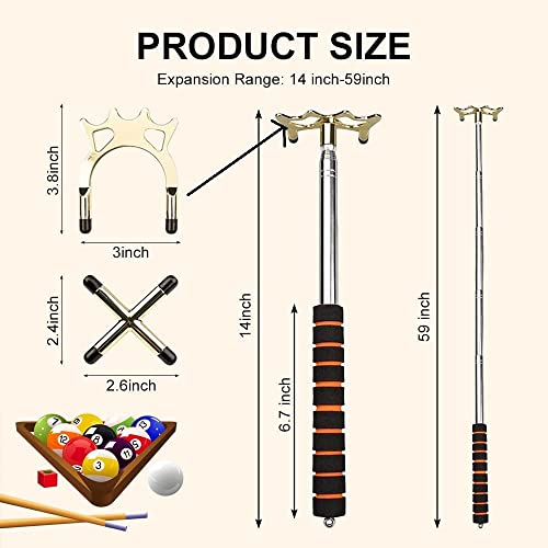 【Kit ponte stecca da biliardo retrattile】: riceverai 1 ponte stecca da biliardo e 2 teste del ponte rimovibili che si estendono da 35 cm/14" a 150 cm/59", consentendoti di regolare la lunghezza del bastone, l'altezza del bastone e posizionarti. Ottieni facilmente qualsiasi angolo di cui hai bisogno per colpire la palla e vincere la partita. Compatibile con la maggior parte dei tipi di stecche da biliardo.