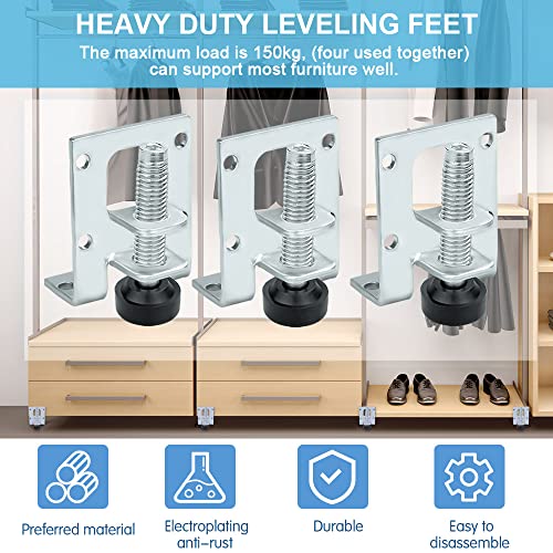 FIGFYOU 4 Pezzi Livellatori per Mobili Piedini di Livellamento Piedini per Scaffali in Metallo Piedini Livellatori Acciaio Piedini per livellare Mobili Scaffali Tavolo Armadi Mobili