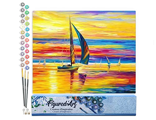 Figured'Art Dipingere con i Numeri - Paint by Numbers Vista Sul Mare Al Tramonto, Passatempo per Adulti, Kit Completo, Hobby Creativi - Quadri fai da te 40x50cm senza cornice