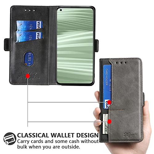 FiiMoo Custodia Compatibile con Realme GT2 PRO 5G, [Slot per Schede][Chiusura Magnetica][Funzione di Supporto], Flip Caso in PU Pelle Premium Portafoglio Custodia per Realme GT2 PRO 5G-Grigio