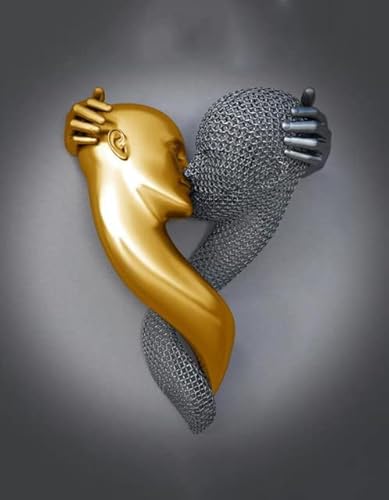 Fikujap 3PCS Love Heart 3D Effetto Wall Art, Figura Astratta in Metallo Scultura Decorazione su Tela, Quadro su Tela Coppia di Quadri Appesi A Parete,40x60cm