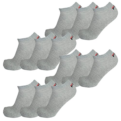 Fila 12 Paia Calzini, Invisible Sneakers unisex, bianco e nero, 35-46 (4 X pacco da 3) - grigio, 39-42 (6-8 UK)