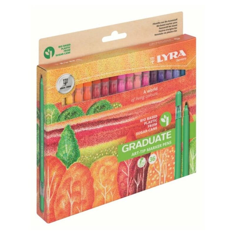 Pennarelli lyra art-tip da 36 graduate attenzione: se in foto o nel titolo viene visualizzato un assortimento o espositore, il prezzo fa riferimento al singolo pezzo e non alla confezione. nota sui tempi di evasione e spedizione: acquistando questo prodotto i tempi di gestione possono arrivare fino a 10 giorni lavorativi.