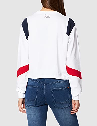 Fila Pita Cropped Crew Maglia di Tuta, Bianco Brillante, Rosso e Nero Iris, M Donna