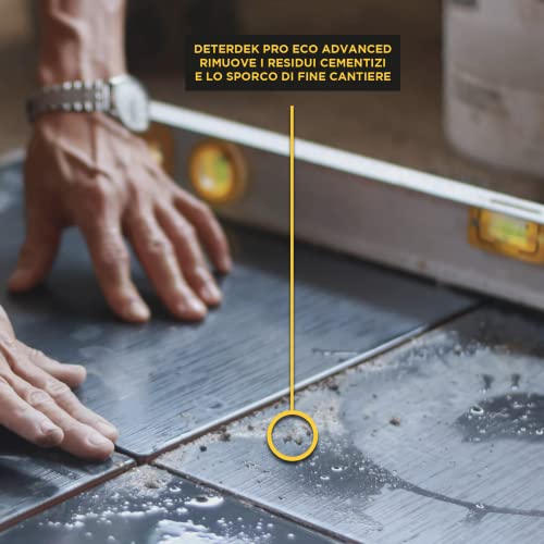 Prodotto 1: DETERDEK PRO ECO ADVANCED è un detergente disincrostante acido tamponato e privo di fosfati grazie alla sua nuova formulazione. Rimuove le incrostazioni dopo la posa di pavimentazioni o piastrelle e lo sporco del cantiere come cemento e stucco.
