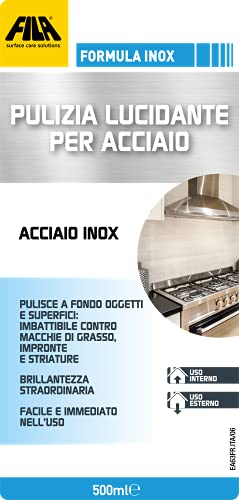 FILA Surface Care Solutions Formula Inox, Detergente Lucidante Per Acciaio Inox, Pulisce, Lucida E Rimuove I Depositi Calcarei, 500 ml