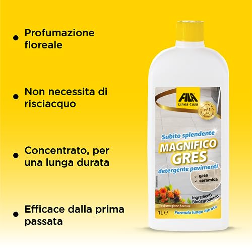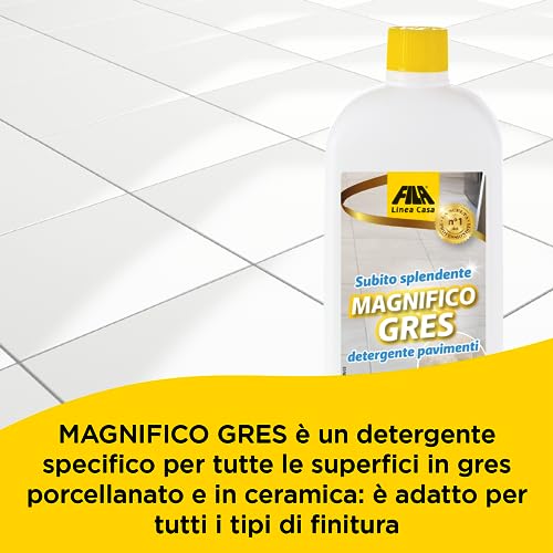 FILA Surface Care Solutions, MAGNIFICO GRES, Detergente per Pavimento in Gres Porcellanato, Adatto al Gres Porcellanato Effetto Legno, Detersivo Profumato per Pavimenti in Gres Porcellanato, 1L