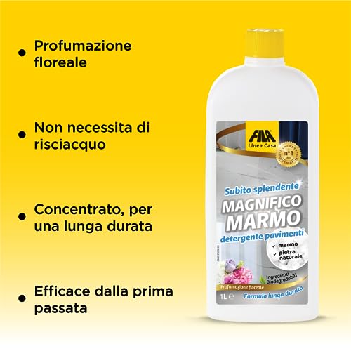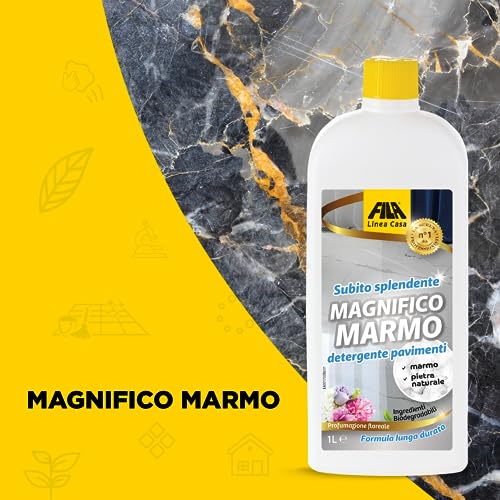 FILA Surface Care Solutions, MAGNIFICO MARMO, Detergente Pavimenti Marmo, Studiato per la Pulizia Marmo e Pietra Naturale, Detergente Marmo Profumato con Essenza Floreale, Per Superfici Delicate, 1L