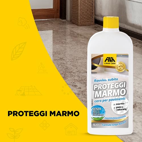 FILA Surface Care Solutions, PROTEGGI MARMO, Cera per Pavimenti Marmo e Pietra Naturale, Effetto Lucida Marmo, Cera Pavimenti Autolucidante, Previene l'Usura ed è Efficace dal Primo Utilizzo, 1L