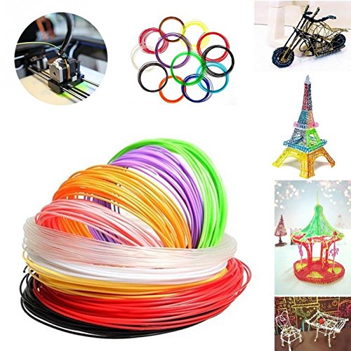 FILAMENTI 3D ABS RICARICHE PENNA/STAMPANTE 3D 1.75mm QUALITA' PREMIUM 12 COLORI DA 10 METRI CIASCUNO (2 COLORI SI ILLUMINANO AL BUIO) + 5 DISEGNI + FOGLIO PLEXIGLASS