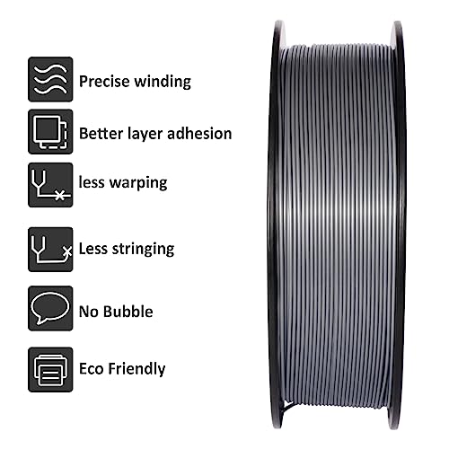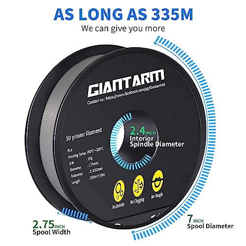 Filamento PLA 1,75 mm, GIANTARM Stampante 3D PLA Filamento 1 kg Spool (Argento)