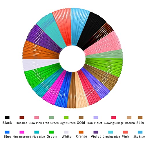【20 FILAMENTI PLA COLORATI】 filamento PLA in 20 colori, per disegnare la vostra idea di capolavoro artistico 3D. Un ottimo set regalo per i vostri bambini e amanti dell'arte, per divertirsi con il fai da te e la pittura. Offre più opzioni per la tua avventura creativa. Filamento per penna 3D in 20 colori per disegnare la vostra idea artistica 3D. arancione fluorescente, giallo fluorescente, bianco, giallo, blu scuro, nero, azzurro, verde, lavanda, viola, viola scuro, ecc.