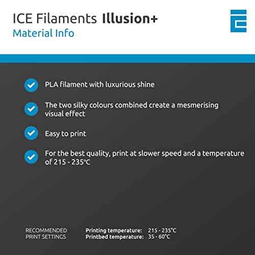 Illusion+ Filament di ICE Filaments è un filamento PLA di alta qualità con un'illusione visiva che combina due colori setosi