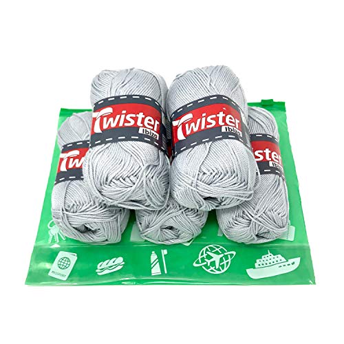 Filato a mano per lavorare a maglia, 5 x 50 g, colore argento 92, con sacchetto con cerniera