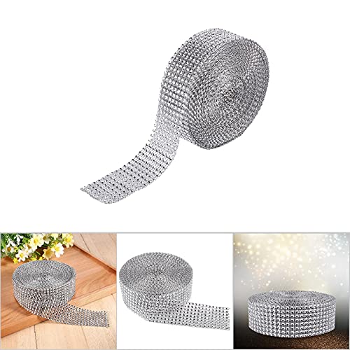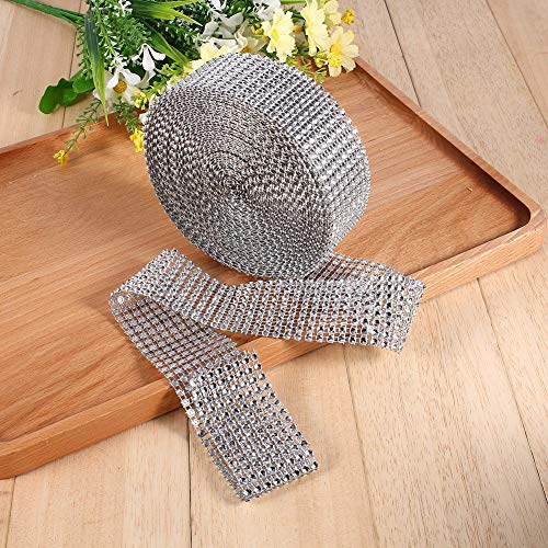 8 file di nastro di strass, rotolo di avvolgere la maglia del diamante nastro di strass di cristallo finto per torte nuziali, baby shower, decorazione di compleanno, 1,4 pollici x 10 iarde(Argento)