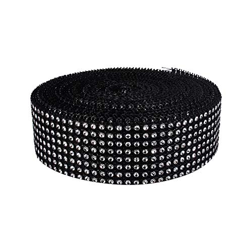 8 file di nastro di strass, rotolo di avvolgere la maglia del diamante nastro di strass di cristallo finto per torte nuziali, baby shower, decorazione di compleanno, 1,4 pollici x 10 iarde(Nero)