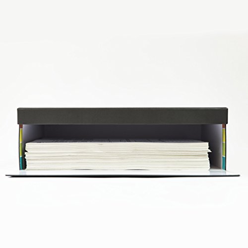 INCLUDED - Archiving box made of high-quality coated cardboard for up to 600 pages of paper and integrated colour scale for finding the documents. Scanning device for smartphones including LEDs and NFC chip. The scanning device can be easily placed on each box using magnets and then folded to save space. Free app use in combination with the fileeeBox.
